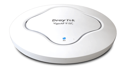 VigorAP 910C is a dual-band wireless access point designed for ceiling or wall mount. It supports stand-alone operation and can also integrate with DrayTek routers or VigorACS platform for central management.